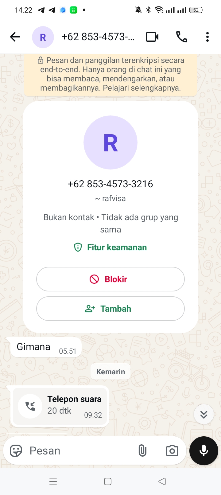 www.Sikat kasus | Jakarta – Berbagai macam cara orang melakukan tindakan kejahatan untuk memuaskan kepentingan pribadi, salah satunya dilakukan oleh pelaku menamakan diri rafvisa dengan nomer +62 853 4573 3216 ini.
