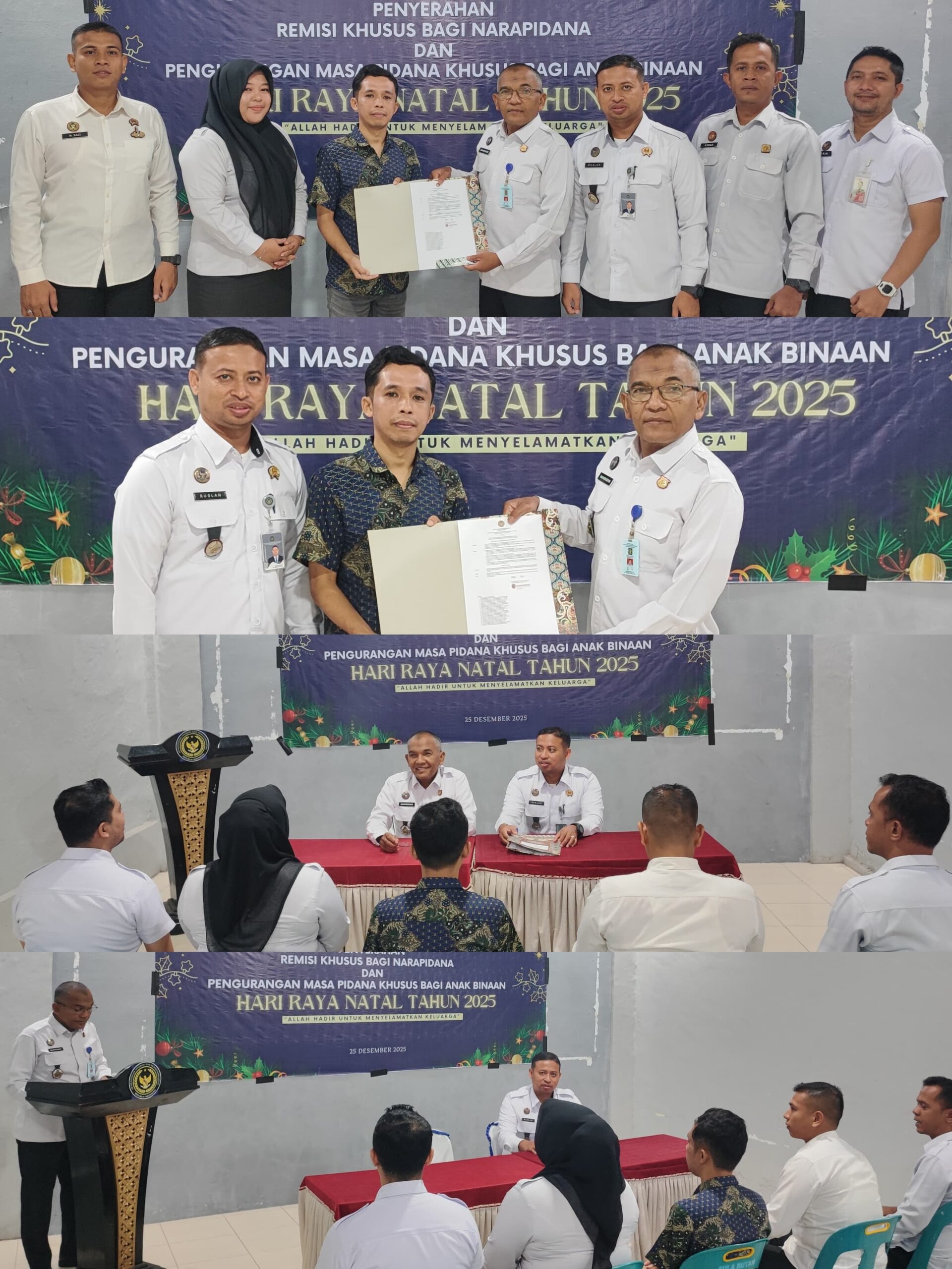 Sikatkasus.news |Banda Aceh – Rumah Tahanan Negara (Rutan) Kelas IIB Banda Aceh melaksanakan kegiatan Penyerahan Remisi Khusus Hari Raya Natal bagi Warga Binaan Pemasyarakatan (WBP), Kamis (25/12), bertempat di Aula Rutan Kelas IIB Banda Aceh.