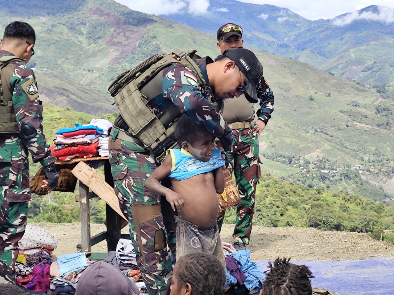 Disela-sela kegiatan Karya Bhakti dan Bakti sosial TNI dan Warga, Personel Satgas Yonif 112/DJ membagikan Sarana Penggalangan berupa pakaian layak pakai kepada warga kampung Kalome serta melaksanakan pengobatan dan pengecekan kesehatan secara gratis.
