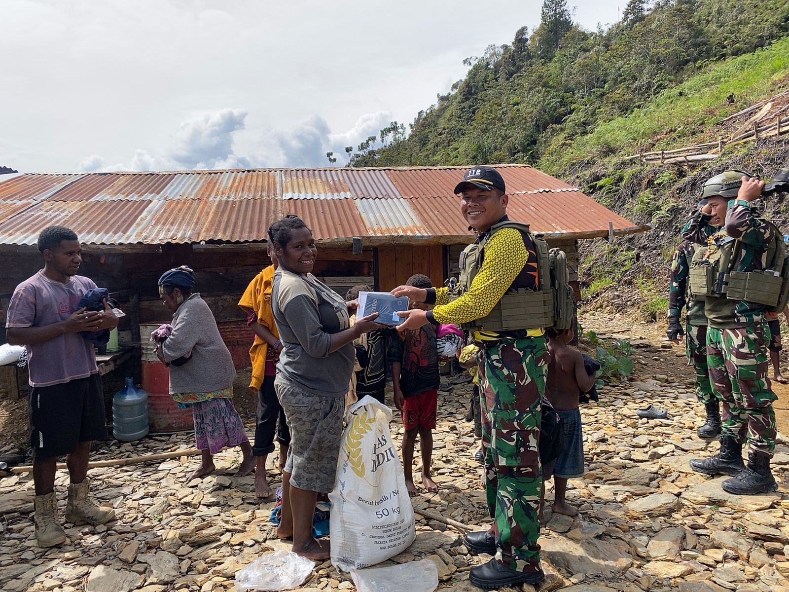 www.SikatKasus.news | Papua Tengah – Pos Puncak Senyum Satgas Yonif 112/DJ laksanakan kegiatan Teritorial Prima dengan menggelar Bakti Sosial kepada Masyarakat berupa Pengobatan gratis, Membagikan Pakaian Layak Pakai dan memberikan bantuan Sembako di Kampung Yarmukum, Distrik Puncak Senyum Kabupaten Puncak Jaya Provinsi Papua Tengah, Rabu (24/09/2025).