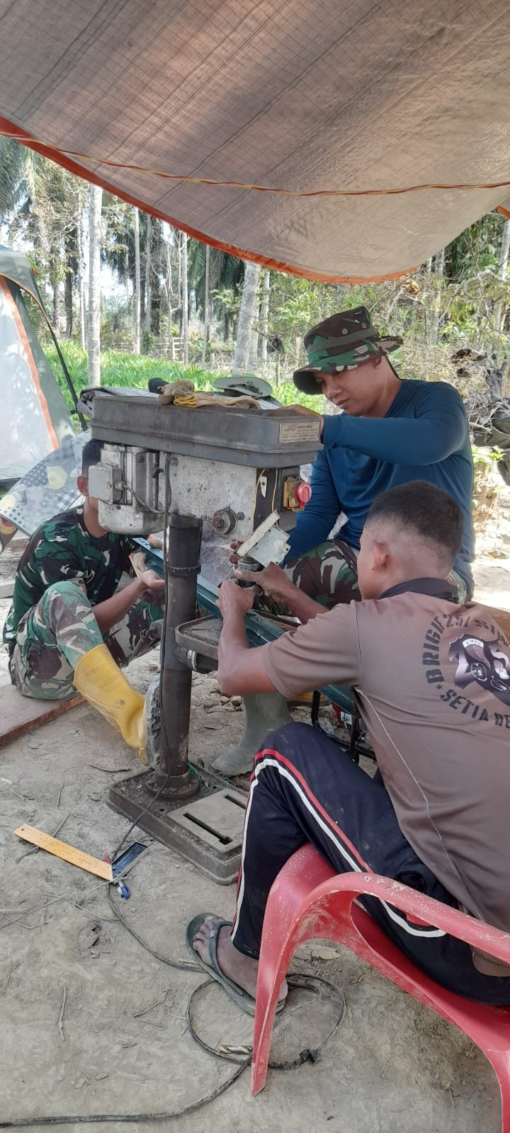 Dalam kegiatan yang dilaksanakan hari ini, para personel Satgas melanjutkan sejumlah pekerjaan teknis penting pada konstruksi jembatan. Salah satu pekerjaan utama yang dilakukan adalah melanjutkan proses pengelasan serta penguatan besi UMP pada landaian titik A, yang merupakan bagian vital dalam menopang kekuatan struktur jembatan. Proses penguatan ini dilakukan secara teliti agar konstruksi jembatan memiliki tingkat keamanan yang tinggi serta mampu menahan beban sesuai dengan standar teknis yang telah ditentukan.