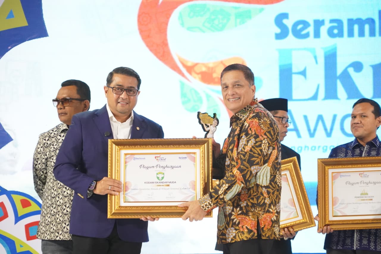 Dalam kesempatan itu, Kodam Iskandar Muda dianugerahi penghargaan sebagai Pembina Kreativitas Pemuda di Wilayah Teritorial Kodam IM. Penghargaan tersebut diserahkan langsung oleh Menteri Ekraf RI, Teuku Riefky Harsya, kepada Pangdam IM, Mayjen TNI Niko Fahrizal, M.Tr.(Han)., sebagai bentuk apresiasi atas kontribusi TNI dalam membina, mendukung, sekaligus menginspirasi generasi muda untuk terus berkarya di bidang ekonomi kreatif.
