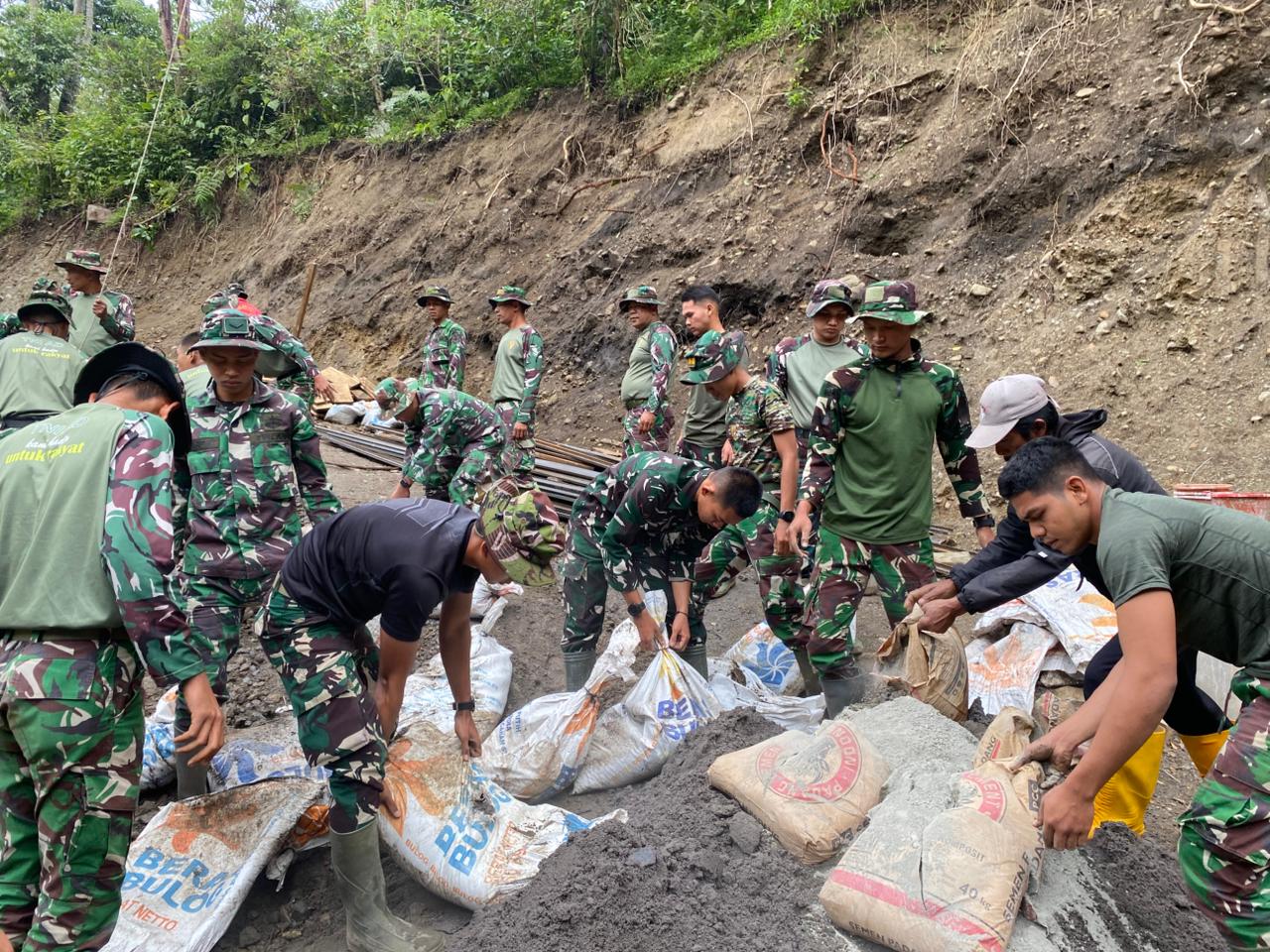 Sebanyak 10 personel dari Kodim 0106/Aceh Tengah bersama 20 personel Yonif TP 854/Dharma Kersaka diterjunkan langsung ke lokasi pembangunan. Mereka bekerja bahu-membahu dengan warga yang secara sukarela turut membantu proses pengerjaan demi mempercepat penyelesaian jembatan tersebut.