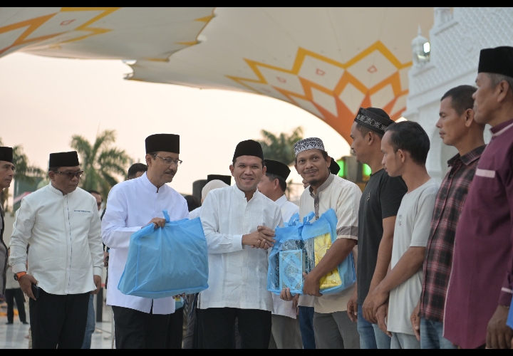 Banda Aceh – Menteri Dalam Negeri Muhammad Tito Karnavian bersama Menteri Sosial Saifullah Yusuf menghadiri buka puasa bersama di halaman Masjid Raya Baiturrahman, Banda Aceh, Jumat (6/3/2026).